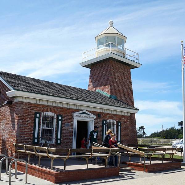 这个海滩是以冲浪而著称的,有一座古老的灯塔现已成为了冲浪博物馆。博物馆里有很多具有历史纪念意义的物品展出,也有一些纪念品售卖。博物馆旁边的一个小海湾里,不少冲浪爱好者在冰冷的海水中冲浪,真是佩服啊...