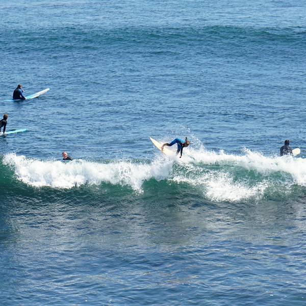 这个海滩是以冲浪而著称的,有一座古老的灯塔现已成为了冲浪博物馆。博物馆里有很多具有历史纪念意义的物品展出,也有一些纪念品售卖。博物馆旁边的一个小海湾里,不少冲浪爱好者在冰冷的海水中冲浪,真是佩服啊!看看我们晒着太阳还要穿那么多,他们在冰冷的海水里冲浪,是有多热爱才能有这份坚忍啊!