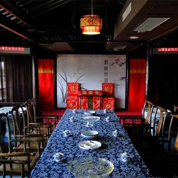 昆曲有字幕也有解说,浓浓的古文化情怀。每天都有昆曲演出,还原明清风格的家班全貌每天都有昆曲演出,还原明清风格的家班全貌。毗邻山塘河水,可以任意选座,有茶水有蜜饯有wifi。昆曲有字幕也有解说,浓浓的古文化情怀。在这小桥流水的江南水乡,静坐听听昆曲也是别有一番风味。