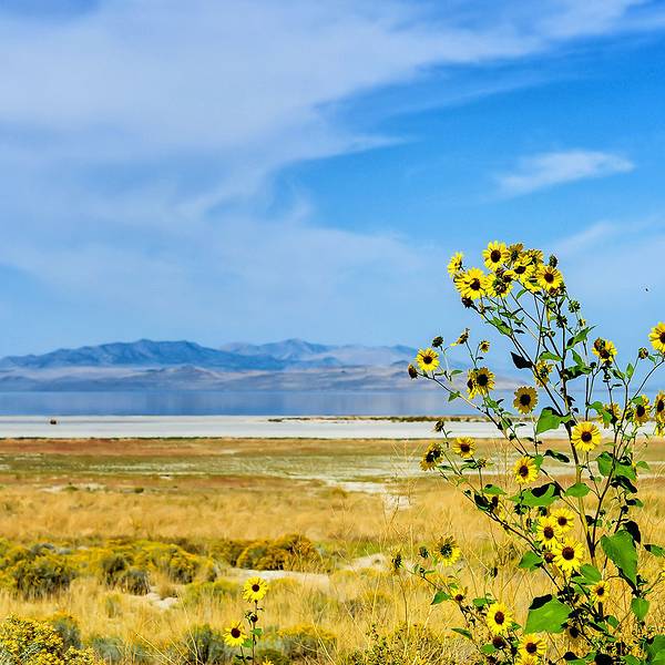 如此贫瘠的土坷垃上竟然生长了很多向日葵,成为这荒凉天地间最大的色彩,大盐湖因为盐分太高,盐度是...从波特卡洛出发,15号公路一路向南前往盐湖城,先去了盐湖城北边的Antelope island,也算是一个小型的湖心岛国家公园,这里是看大盐湖的最佳地点,沿长长的陆桥前往岛上,没有什么游客,向北望去,蔚蓝的盐湖与蔚...从波特卡洛出发,15号公路一路向南前往盐湖城,先去了盐湖城北边的Antelope island,也算是一个小型的湖心岛国家公园,这里是看大盐湖的最佳地点,沿长长的陆桥前往岛上,没有什么游客,向北望去,蔚蓝的盐湖与蔚蓝的天空几乎融为一体,甚至都看不清地平线。。。远眺半岛上的小山,湖光倒影,又是画卷一般的美丽。 展开