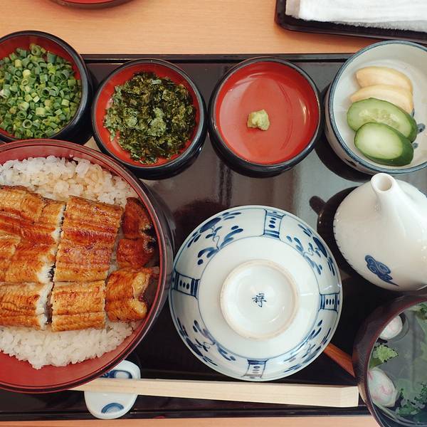 - 要注意,日本鳗鱼店菜单中有鳗鱼饭(うな重)和烤整鳗两种单品,点餐时要多加注意避免尴尬。推荐鳗鱼三吃