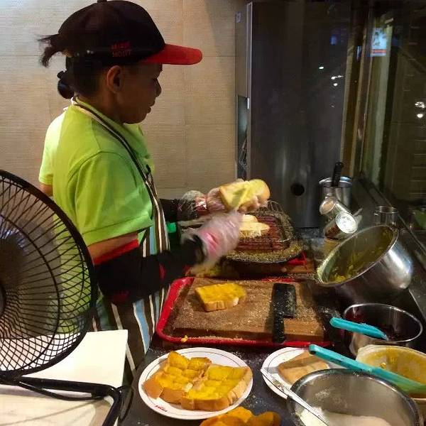 mont toast是一家知名吐司面包连锁店,下午三点开始营业到凌晨,而且由于周围夜市的原因,越晚生意越好。价位不贵,味道不错。