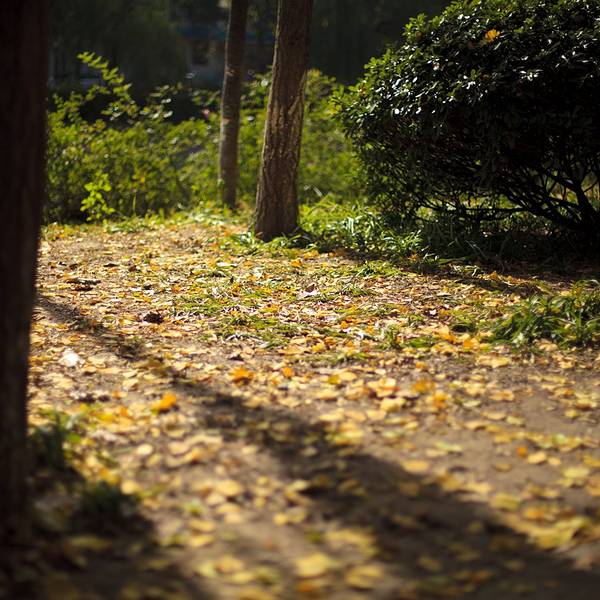 2️⃣外面的小马路上,结合路上的行人和暖阳,颇有秋天的气息。