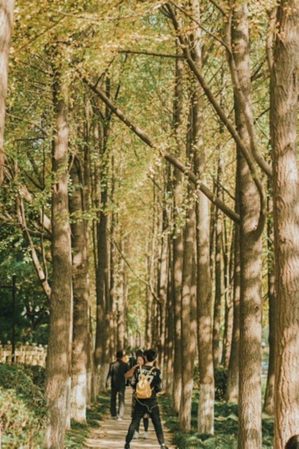 工作日会少点人,周末人多,建议16:00左右到太阳下山之前去拍摄黄昏去拍摄~光线和银杏呈现出非常美的氛围。