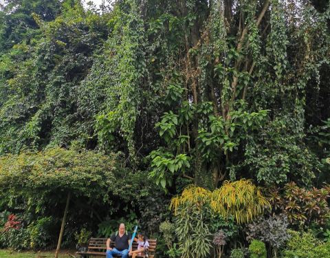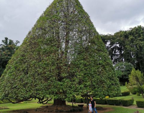 在这里我要提醒各位亲,在斯里兰卡总的来说,我们遇到的大部分的人还是友善的,但是也有个别的不那么善良!我们先回酒店换了纱丽,出了酒店一位突突车司机主动问我们去哪里?看样子有50来岁的样子,我们也不好意思拒绝这么辛勤的大叔,就让他带我们去植物园,不过告诉他先带我们去火车站买第二天要去努沃埃利耶的火车票,然后再去植物园,不需要等我们返回,出发之前讲好了价格是1000卢比。当我们去到火车站才知道一等座没有票了,二三等座需要明天提前半小时来买!在车上司机倒是很实在的告诉我们,你们现在去植物园有点晚了,应该早点去!等我们到达的时候,植物园已经快关门了,不过这个大叔还是好心的帮我们去咨询能不能进去,当时我们那个感激的心呀!简直充满了感动!植物园工作人员蛮通融的让我们进去了,而就在此时我们想要把车资给司机,结果司机说不用先付,我在外面等你们出来,我们很纳闷,之前不是说好了不需要等我们返回吗?不过看在他刚刚热心帮我们的份上,那就只有让他等一会了!当我们进去以后才发现里面真的好大好大啊!根本不是一个小时能逛完的!而我们只能走马观花,走了其中很少一部分,进去不到半个小时,里面的工作人员就让我们出园了!植物园里面其实景色还不错,感觉就是一个超大型的天然氧吧!整个植物园给人的感觉非常优雅,很好的融合了人工美和天然美,如果要去植物园的朋友们,至少要预留一下午的时间,感觉才够啊!我们就是在佛牙寺耽误了太久的时间,以至于去到植物园已经很晚了,进去里面,我们才觉得充满了遗憾!