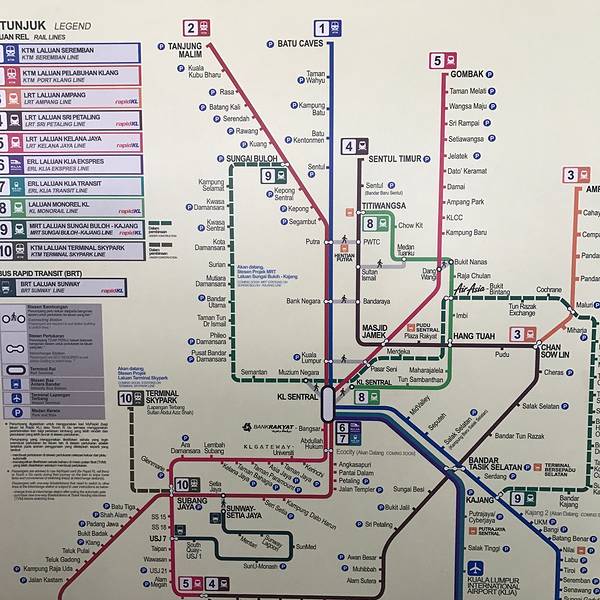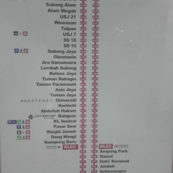 - 地铁站其实都不大,除了KL Sentral (中央车站)和 Puduraya (富都车站)之外