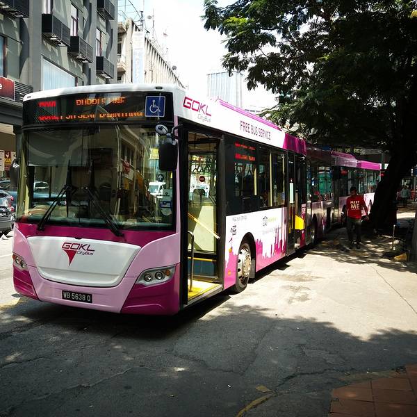 来到一楼售票大厅,购买了明天20张去云顶的大巴往返票。由于购买的是20人的票,每一次告诉工作人员购买20个人的票,对方都会惊讶,担心听错,反复给你确认。票价依旧便宜,购买成功后送了一口气,因为我知道此次之旅的所有难点都已全部顺利解决。购票后返回酒店休息片刻,15点带着大家坐酒店旁边的免费紫线公交车,前往市区武吉免登核心商业圈和双子塔商业圈观光去了。吉隆坡有四条免费公交线路GOKL(绿、紫、蓝、橙),大家有兴趣的可以去研究一下。