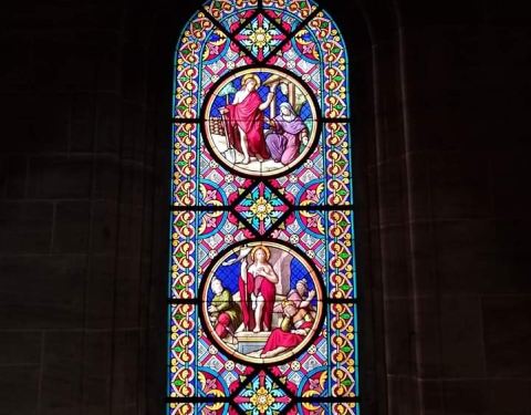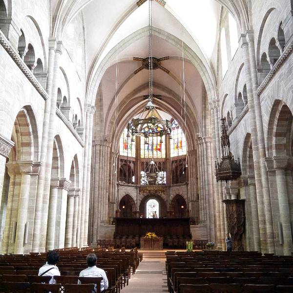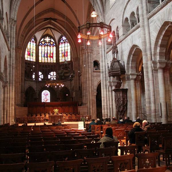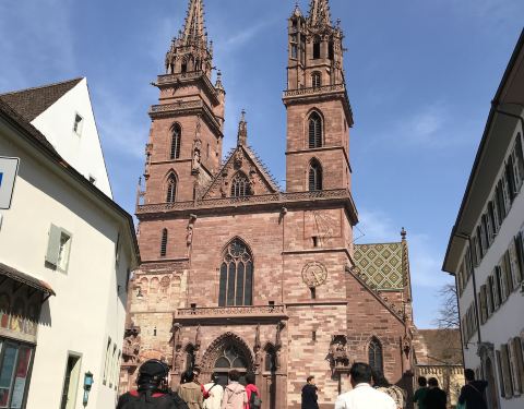像我在的这三个月,就有巴塞尔中秋节这么盛大的华人活动,非常有趣。玻璃窗花很漂亮。基本上都是广式的看了欧洲这么多的教堂,红色的哥特式教堂还是第一次见到。这座教堂其实在917就建成了,其历史可以溯到查理曼大帝王朝时期。而现在的教堂风格,是1356年大地震后重新修复而成的,充满哥特式风格
