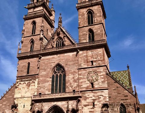 巴塞尔大教堂是巴塞尔老城的主要景点之一巴塞尔大教堂是巴塞尔老城的主要景点之一。大教堂高高的围墙由暗红色的沙岩砌成,坡顶是用彩色的琉璃瓦挤成规则的几何图案,高耸的双塔,见证了大教堂几个世纪以来的沧桑。教堂历经几百年来的修缮和改建,建筑风...巴塞尔大教堂是巴塞尔老城的主要景点之一。大教堂高高的围墙由暗红色的沙岩砌成,坡顶是用彩色的琉璃瓦挤成规则的几何图案,高耸的双塔,见证了大教堂几个世纪以来的沧桑。教堂历经几百年来的修缮和改建,建筑风格也随着年代而改变,直至18世纪,变为后巴洛克式和新古典风格定型至今。 展开