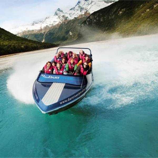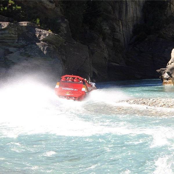 Jet Boat喷射快艇活动也是源于新西兰,皇后镇周边有众多美丽的湖畔与小溪川流,是享受喷射快艇的绝佳之地。而其中风景最优美,行程最好玩的喷射快艇莫过于格林诺奇(Glenorchy)指环王拍摄地里头的Dart River Jet Boat达特河喷射快艇。行程中四驱车带你走过许多《指环王》、《霍比特人》和《金刚狼》等国际大片的景点取景地,穿过Paradise天堂牧场,专业徒步向导带你走进中土世界里的原始森林,接着走水路体验速度与激情。窒息的美景、丰富的行程、幽默的讲解以及极速的快艇绝对让你全方位享受视觉、听觉和感觉的盛宴。