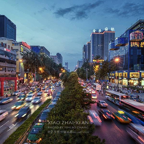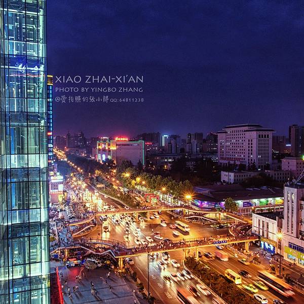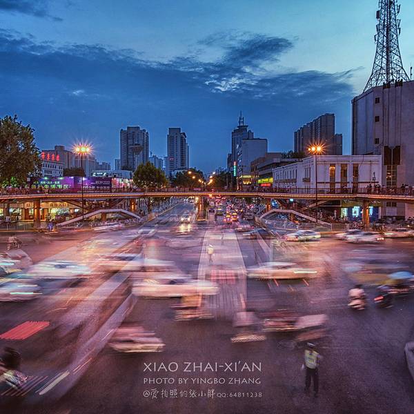 加了几个西安的爬楼群,但是好像真正的大神都不在。听说小寨赛格可以上去,于是下班背着相机去了。本来手持想拍车流的。无奈,西安太堵了,只能拉成这样了...前段时间,看了朋友发的一组高空城市夜景,感觉还不错。