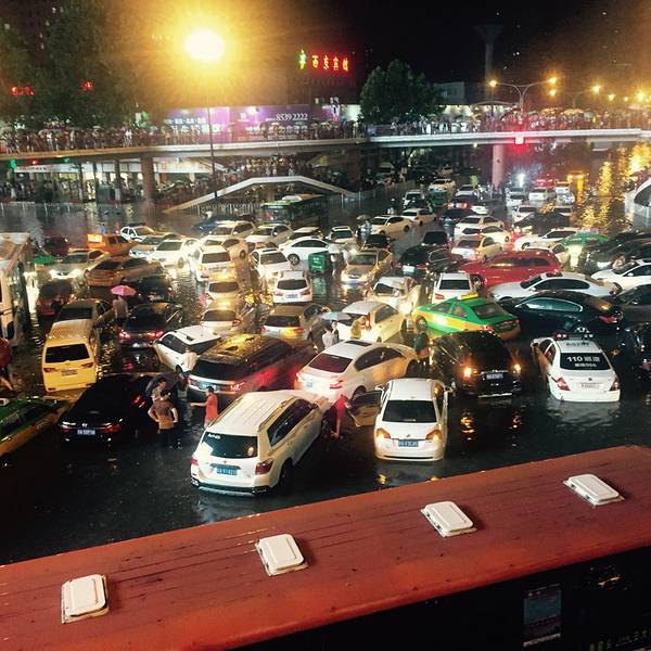 没想到四十度的高温能下暴雨,我和女朋友一步一步趟着水走了出去。水平均在大腿高。