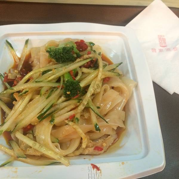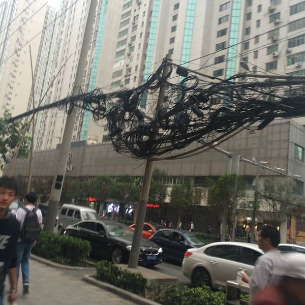 - 秘制凉皮,好吃到爆,辣的过瘾。肉夹馍也好吃,面香肉更香。我被这一团团的电线吸引了