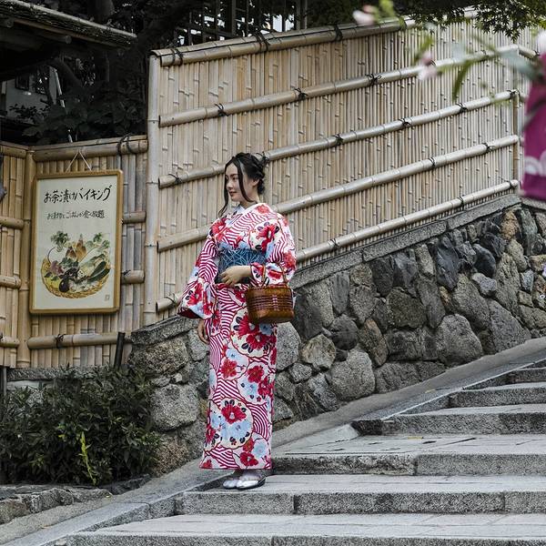 一早我们就从京都站出发去清水寺,坐公交车在清水道站下车,拐进小巷就是二三年阪了。公路边有好几家和服租赁店,我们选了一家中意的,换上了和服,做了发型,就开始沿着二年阪三年阪一路逛去。喜欢木质结构的建...一早我们就从京都站出发去清水寺,坐公交车在清水道站下车,拐进小巷就是二三年阪了。公路边有好几家和服租赁店,我们选了一家中意的,换上了和服,做了发型,就开始沿着二年阪三年阪一路逛去。喜欢木质结构的建筑,自然纯粹又不失庄重的感觉。木屐踩在石板路上,咯噔咯噔,清脆交织,宛如一首轻快的歌谣~