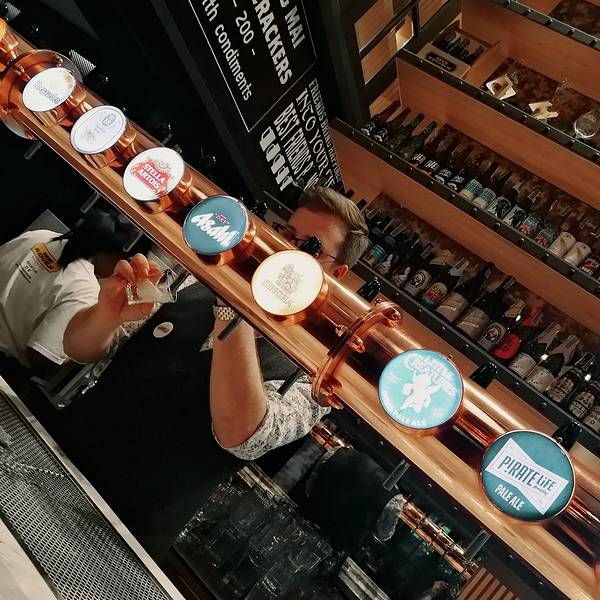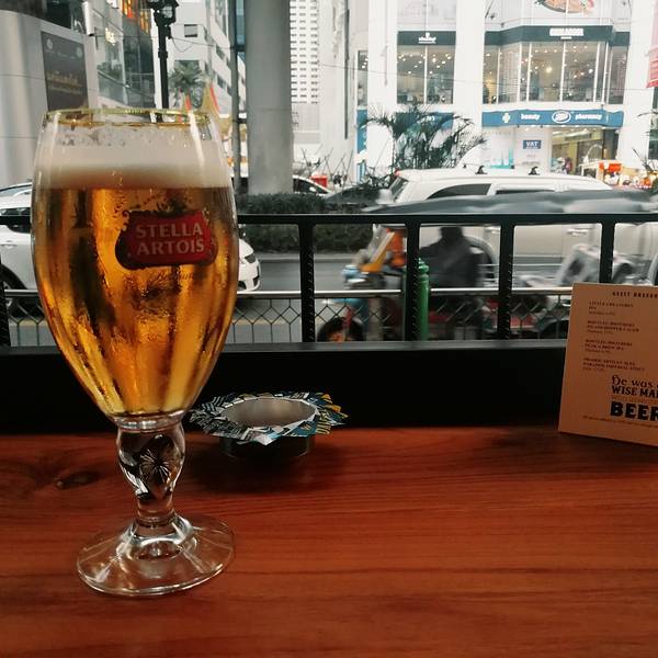 这个中心世界的商场也是蛮大满时髦的,吃喝玩乐都有,进门还需安检之后去了bigC,其实就是个大商场兼蔬果超市。离开个各个商场,路遇一家酒吧,里面的啤酒瓶墙瞬间吸引了我,嗯!这才是我喜欢的,进门喝收集世界各地的啤酒,一直再说收集,其实到地方喝的还是那几种,