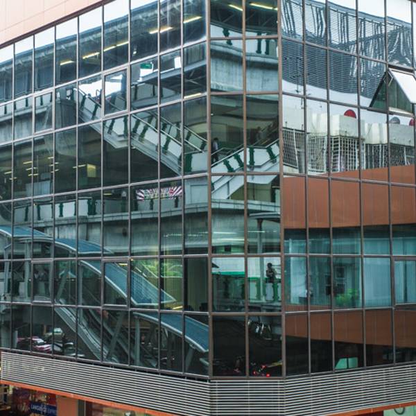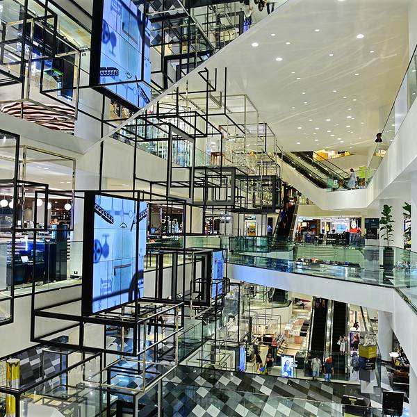 购物中心内,地板泛着耀眼的光,将整个中心打造的格外明亮。在这片繁华的商业区,大型商场之间,都彼此通过过街天桥或者步道紧密相连,保证了往来行人的安全。
