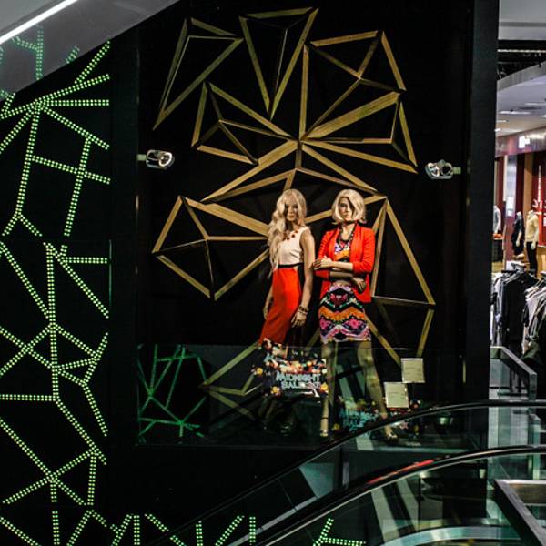 随着各购物中心门前的指示牌,便可进入商场内部。 各式灯光,将展示模特打造的极具个性。身为东南亚最为时尚的城市之一,曼谷拥有众多鲜明的特色潮流。这一系列购物中心内,不仅商品的种类非常丰富,而且经过设计师的精心设计,整个购物中心的风格也显得非常有特色,不论是外面橱窗的模特陈列,还是商场内部的规划,以及商品的归类方式,都显得非常高端大气。