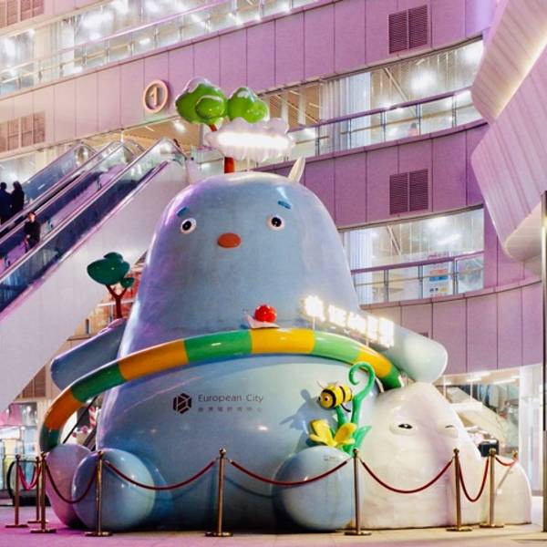 原本以为是哪一个电影、动漫人物,原来这是他们自己的形象,这是欧洲城时尚中心的设计,整体非常的可爱、生活化。