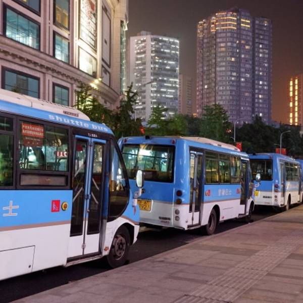 门口摆放了一排穿梭巴士🚌这个是用来做什么的?