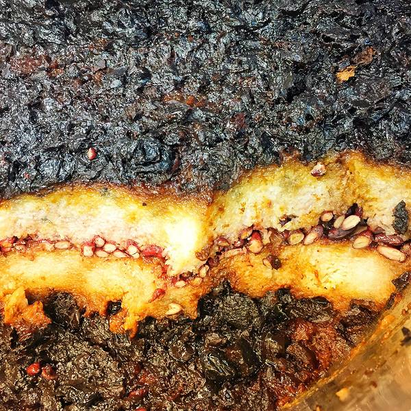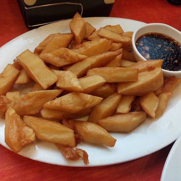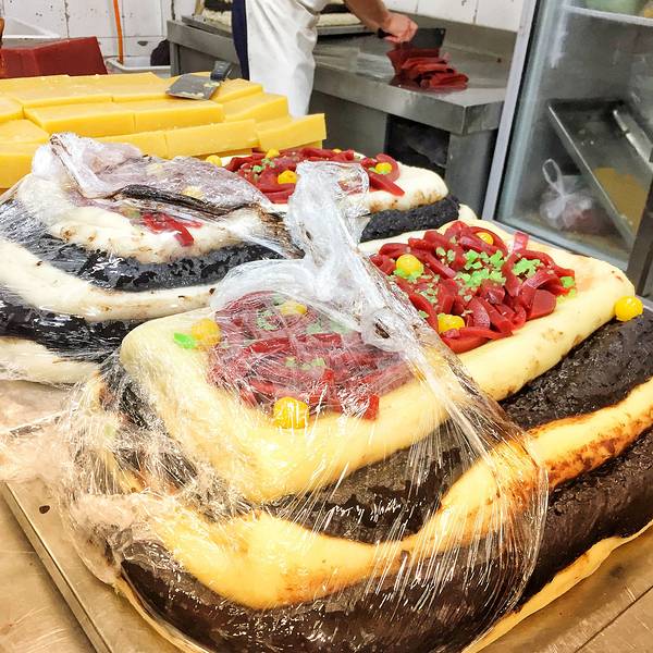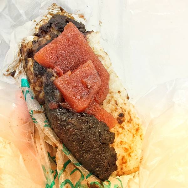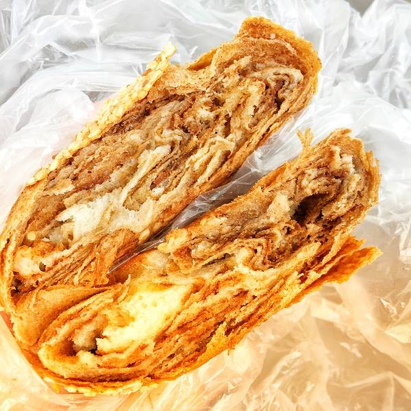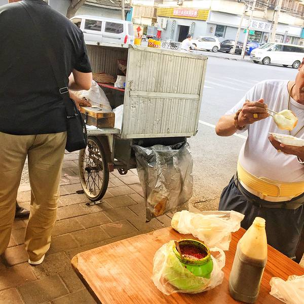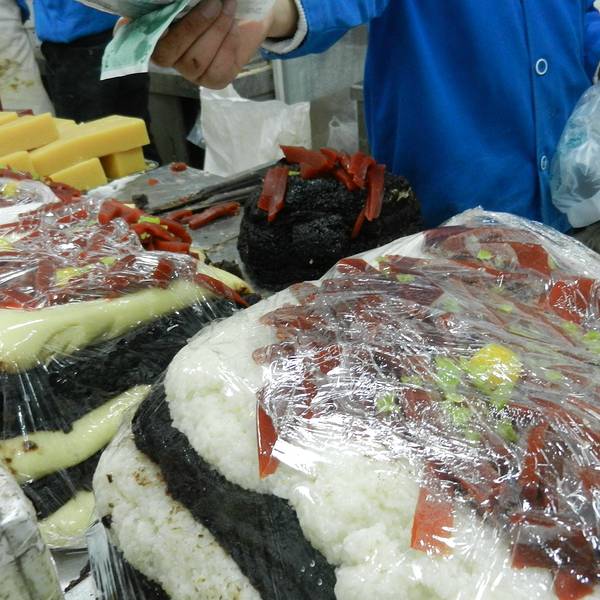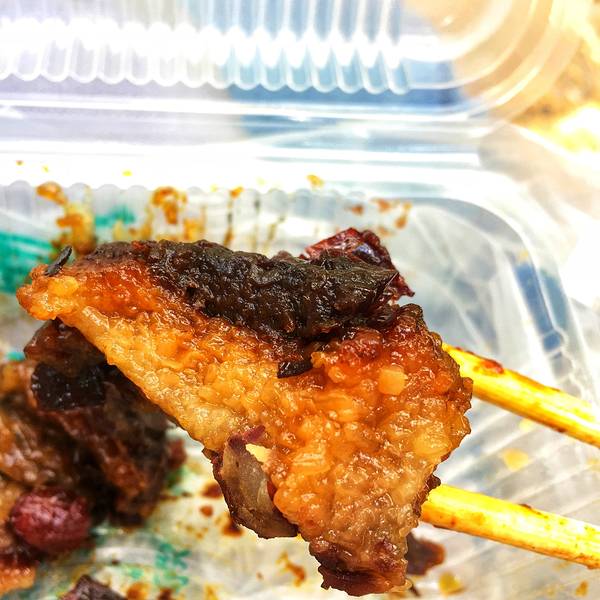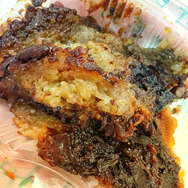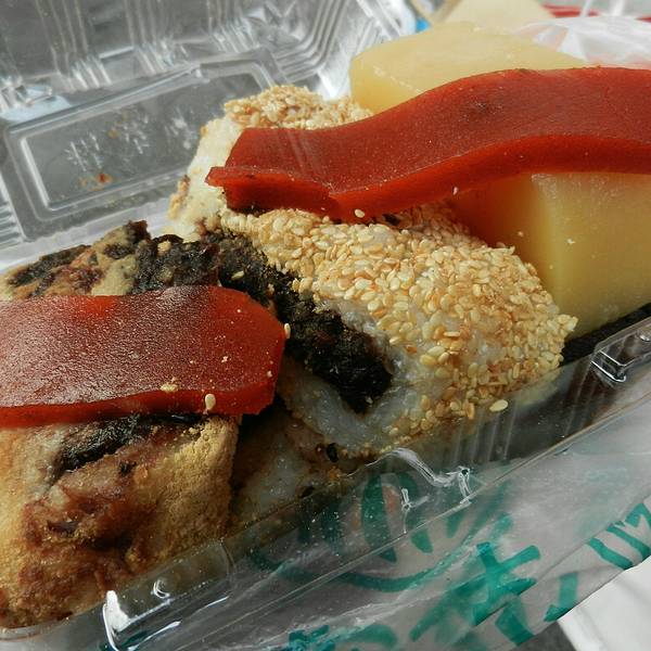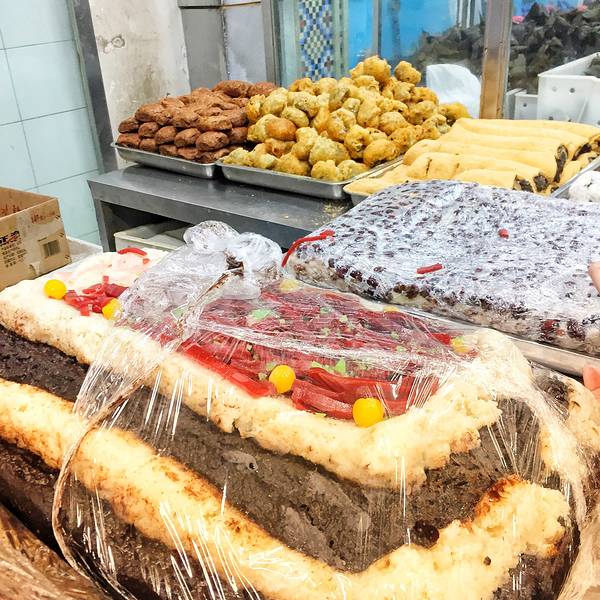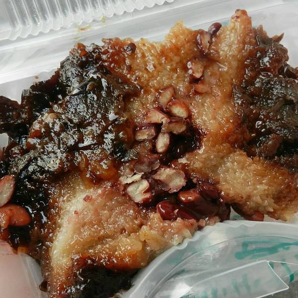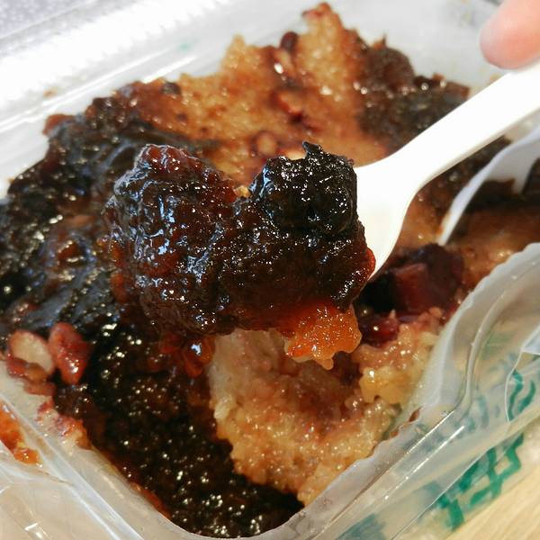 绵软粘甜,白糯米渗入枣色,上层的红枣已经软烂成泥,这款要趁热吃,可以问他要筷子,吃起来会有一点明显的焦苦味儿,本身糯米无甜度,要搭配一些豆沙和枣泥一起,可以少称点试试。没有添加剂,保质期是一天,不用想着能带回去做伴手礼,隔天就会发酸变质。白记年糕