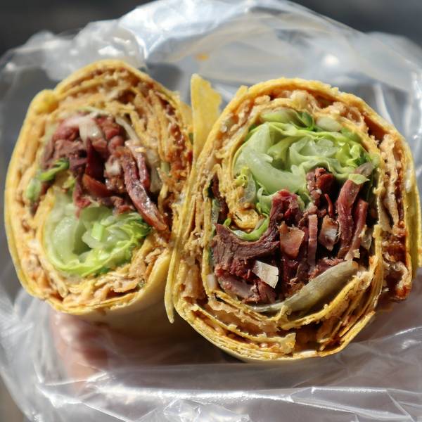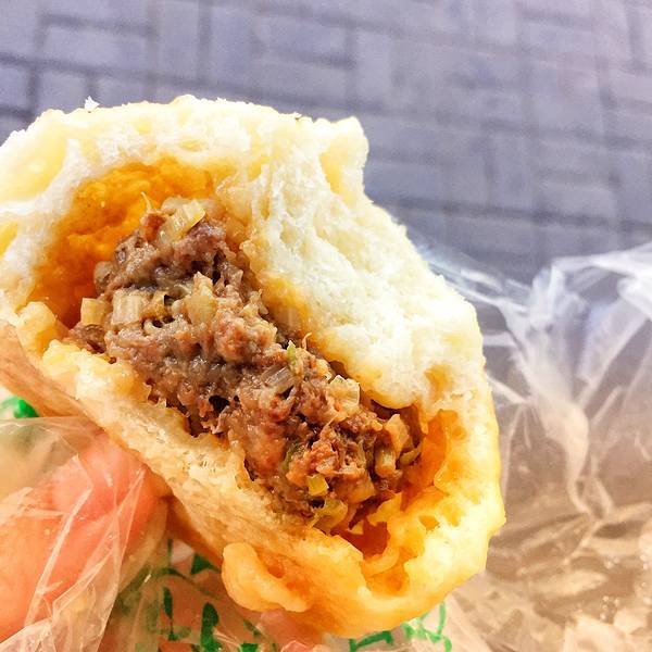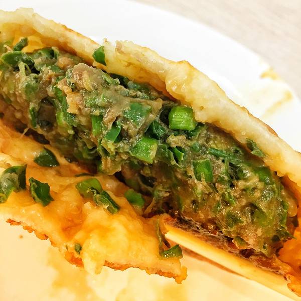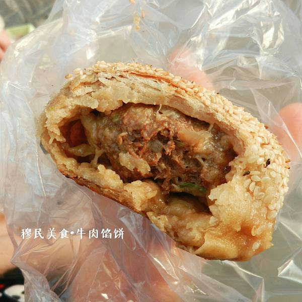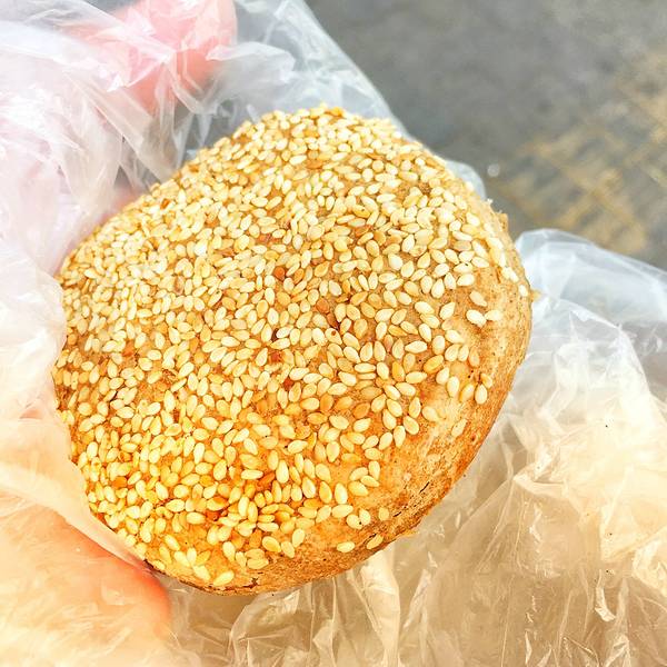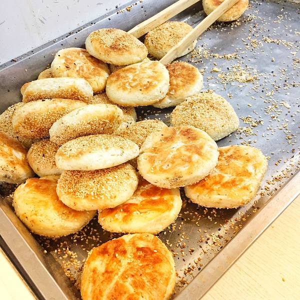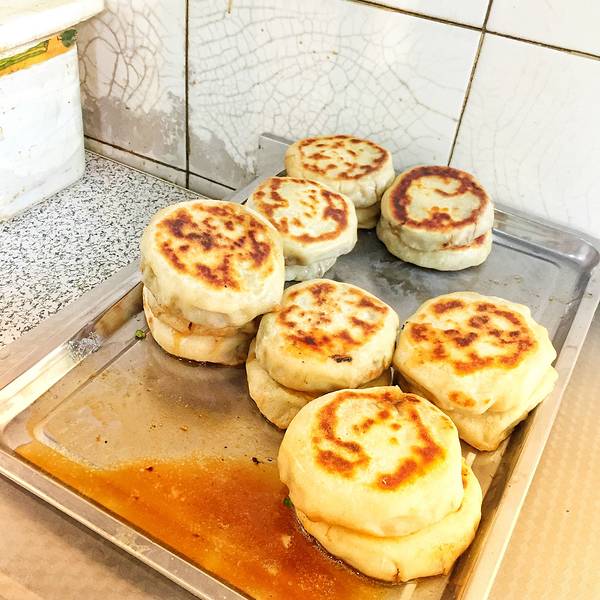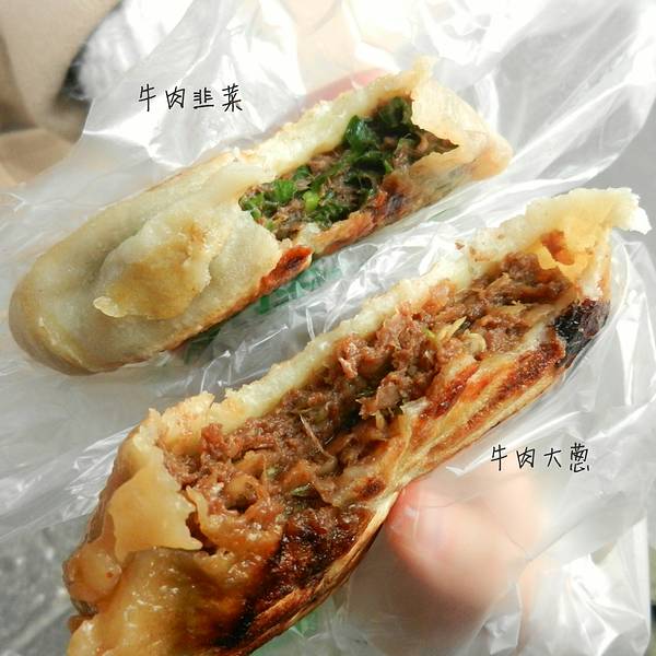 当然是更喜欢牛肉大葱馅儿的,很多人吃馅饼爱淋点醋,我爱吃原味的。轻咬开面皮,浓郁牛肉汤汁潺潺流出,香气扑鼻,一口下去面皮的薄几乎体会不出,全是牛肉和大葱的满足感。好吃。牛肉韭菜馅儿的牛肉部分显然要比大葱味儿的少一些,所以便宜5毛钱。同样多汁,牛肉新鲜。吃完离开时店里正好有刚出炉的芝麻烧饼,肚子容量有限,没有尝试。个头比满记烧饼大一圈喔,闻着也很香。
