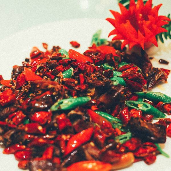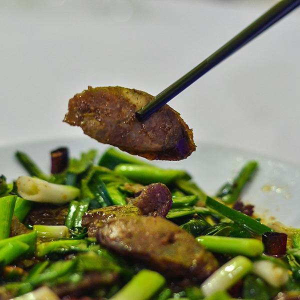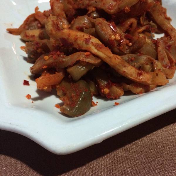 然后吃饭的时候点餐跟老板娘聊天与建议感觉应该算是不错的了。四川特色的香肠炒蒜。不过,看名字还算可以