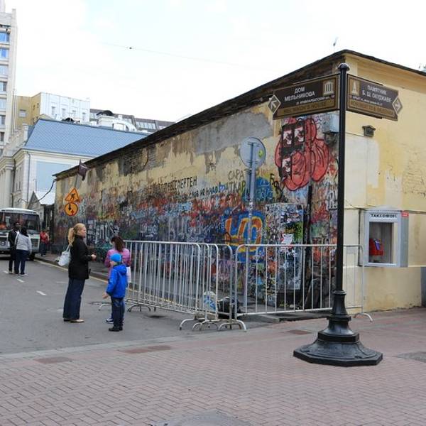 说白了也就是咱国家的步行街似的,外地人必来景点儿。里面很多卖纪念品什么的,门口还有老多黑人用标准的中国话对你说,进来看看,便宜啦之类的,简直就是在国内的感觉,里面有2处吃饭的MyMy餐厅,快餐,对于看不懂俄语的人来说还是这种形式点菜最简单了,想吃什么自己选。要不还不够对话费劲的了。涂鸦墙 展开