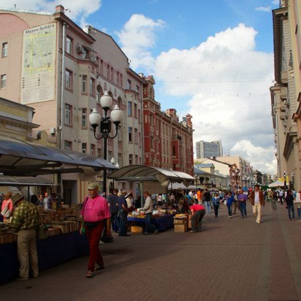 旧阿尔巴特大街是一条具有500多年历史的老街,主要是文化商业街, 店铺大多是古玩店、旧书店和珠宝店,跟北京琉璃厂相像。这里有街头画家、街头音乐家,以及很多出售各种工艺品的街头小贩。