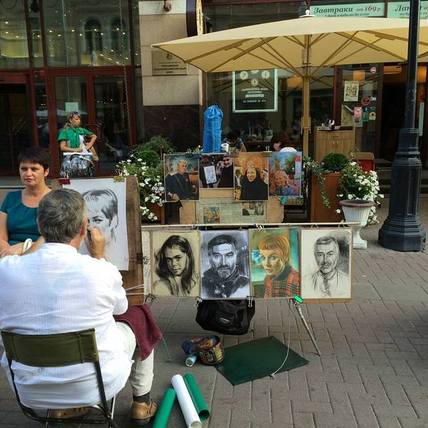 街头作画的艺人是阿尔巴特街上一道不灭的风景。阿尔巴特大街——伟大的诗人普希金住过的大街阿尔巴特大街——伟大的诗人普希金住过的大街!还记得普希金那首朗朗上口的诗吗?