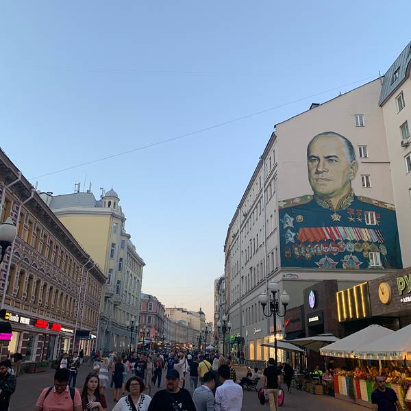 而那过去了的,就会成为亲切的怀恋。阿尔巴特街曾是艺人和画家荟萃的天堂,保存有许多古色古香的建筑。阿尔巴特街的小店铺一家挨一家,商品种类极其繁多,如暖和的护耳皮帽,精心编制的大草鞋,琳琅满目的耳环、坠子,各种古怪的护身符,别致的小包,印有明星头像的T恤衫,年代久远的宣传画,伪造的证件,古董,雕塑,绘有俄罗斯历届领导人形象的玩偶套人......街头作画的艺人是阿尔巴特街上一道不灭的风景。 阿尔巴特街是莫斯科最富盛名的商业街,它对俄罗斯人的意义相当于北京人的“西单”和“王府井”。繁华的街道必定会有夜生活,夜生活必有餐厅,这个音乐烤肉餐厅不便宜,人均200RMB,还需服务费10%,有意思的是用微信或支付宝支付优惠10%。 展开