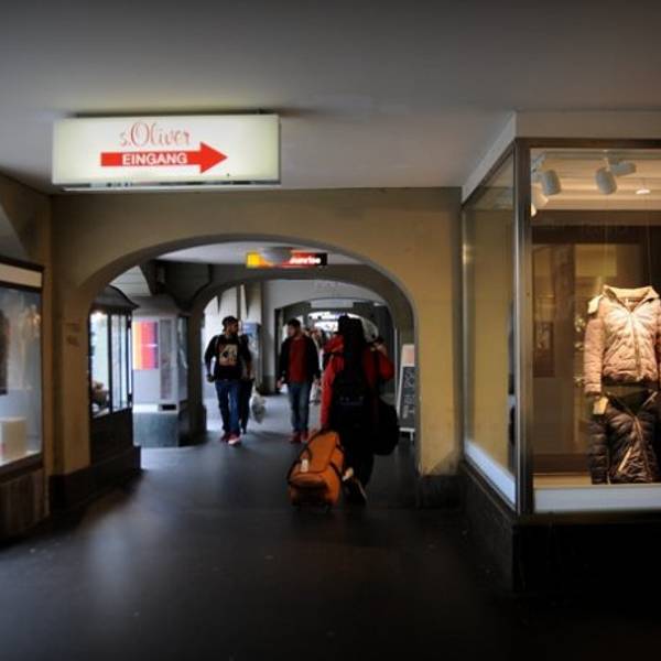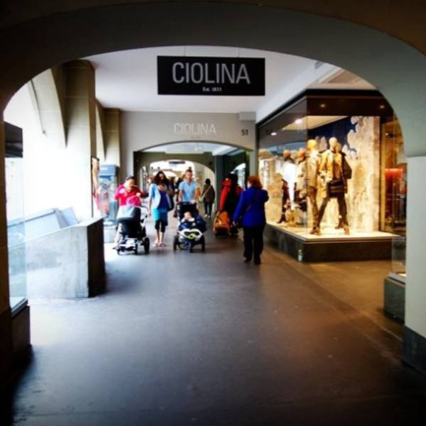 全欧洲最长的有遮蔽的购物长廊Shopping Arcade 就在伯尔尼的老街上,长达六公里,保持着八百年前初建时的风格,拱廊是典型的中世纪建筑。沿街的楼房底层门前是便道,便道的顶部向外延伸,便形成了走廊。走廊临街的一面有拱柱支撑,两柱之间好似宽大的拱门,廊道相连,拱门相接。长廊里集聚着商场、时装店、珠宝店、古董店、钟表店、工艺品店、甜食店、咖啡店。在这里你可以找到瑞士有名的本土品牌,比如Mammut(猛犸象)户外品牌,瑞士本土大牌Navyboot、bally,大型超市Coop、Migros。这里还散布着一些精致的小店,有精美的巧克力甜品店,也有设计感十足的装饰品店,拐角处听到激昂的小提琴演奏声,是街头艺人忘情而精湛的表演,一名木偶表演者已经在伯尔尼长廊表演了许多年,去年我就见过他了,不变的是他精彩的演出和众多围观的行人。