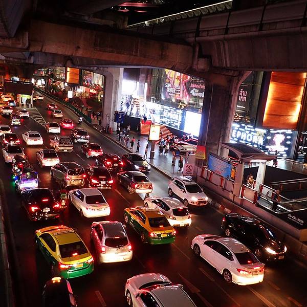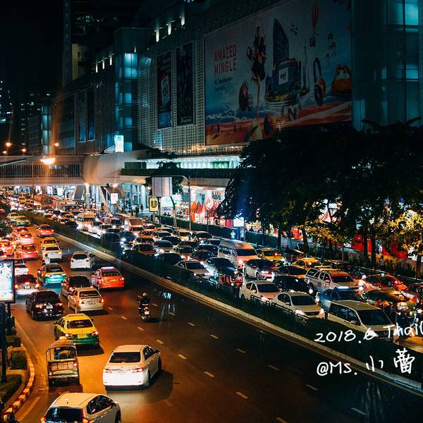 夜幕降临下的暹罗广场,没什么感觉,就是觉得这样逛街真的很累。。。。。。虽然我有一天骑一百多公里的体力,论逛街只有被女生吊打的份。。。。。。堵车才能说明你是大都市,看到曼谷也堵车我就放心了,哈哈哈哈...