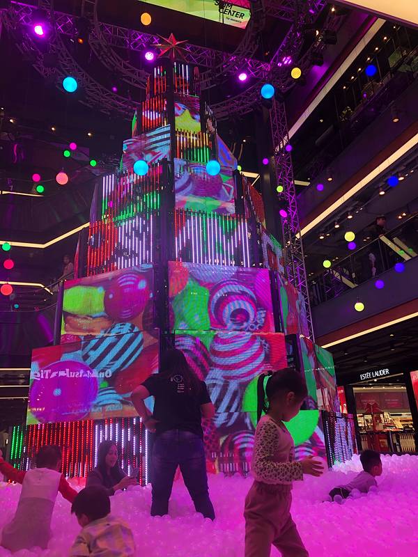 终于在商场里转了一圈后找到一家泰式火锅店,很清淡养生,适合老人小孩。只要点一份肉类拼盘,蔬菜是自助免费吃的,最后总共花了折合人民币180元左右。吃完时间不早了,准备回酒店,下楼时发现有个大人小孩可以进去玩的海洋球,有时间限制的。走路回酒店,这是酒店的外观,我是现在天桥上拍的,刚好也是BYS站,回酒店不用下一楼,二楼楼梯直接通往酒店二楼,很方便!
