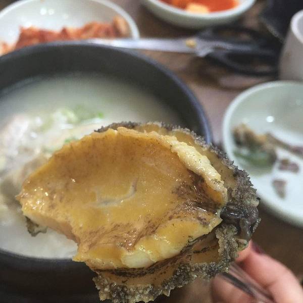 一天之计在于吃,早上我俩就奔着著名的参鸡汤去了,找了好久终于找到排名第二的这家店!这大鲍鱼也是没谁了!真的有人参,哇哦!