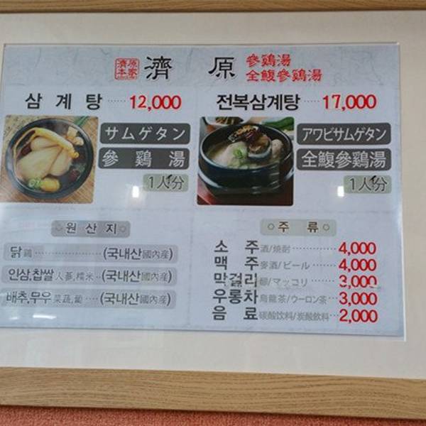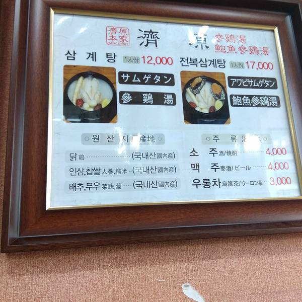 - 我们误打误撞进的这家济源参鸡汤店,其实还挺有名气,韩国的饭店挺不错,菜单简单,不用为了点菜纠结