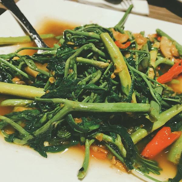 好吃~。有香料的味道,口感和空心菜差不多。无奈长安君吃螃蟹过敏(那为什么要来吃建兴酒家