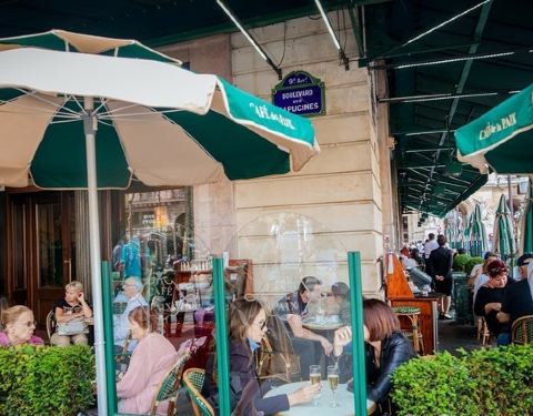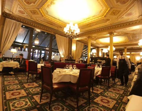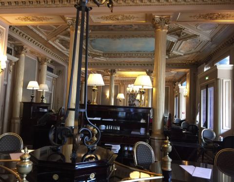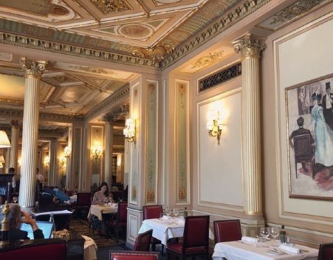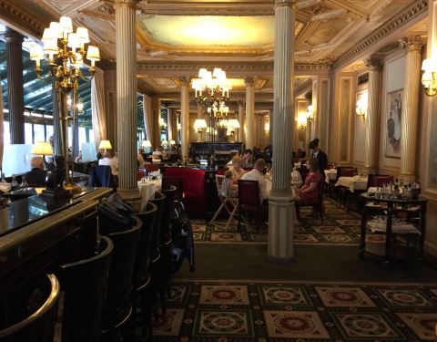 这个咖啡馆的设计者,同时也是巴黎歌剧院的设计者,所以你可以发现咖啡馆的内部装潢和歌剧院一样的金碧辉煌,一到中午和晚上的时候人也非常多。