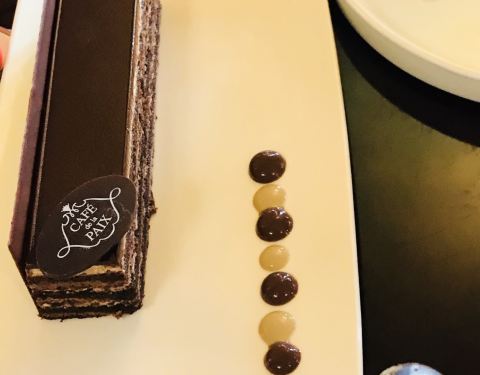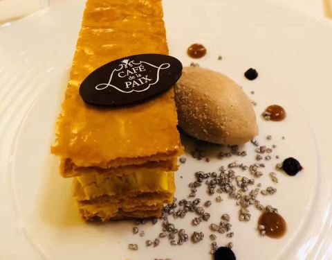 和平咖啡厅太有名气了,冲着雨果在这里写巴黎圣母院剧本的地方也要进去喝一杯咖啡,吃一个甜点,但价格非常昂贵,不过咖啡和点心都非常美味,环境也非常不错。