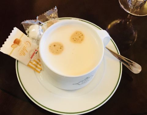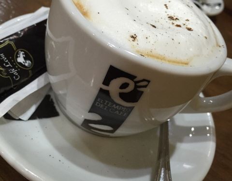 咖啡馆里面不仅仅有咖啡,还有别的果汁饮料,可以选择我们点的卡布奇诺。上面的泡沫厚厚一层真的非常丰富,也很绵密。可以自己加糖。