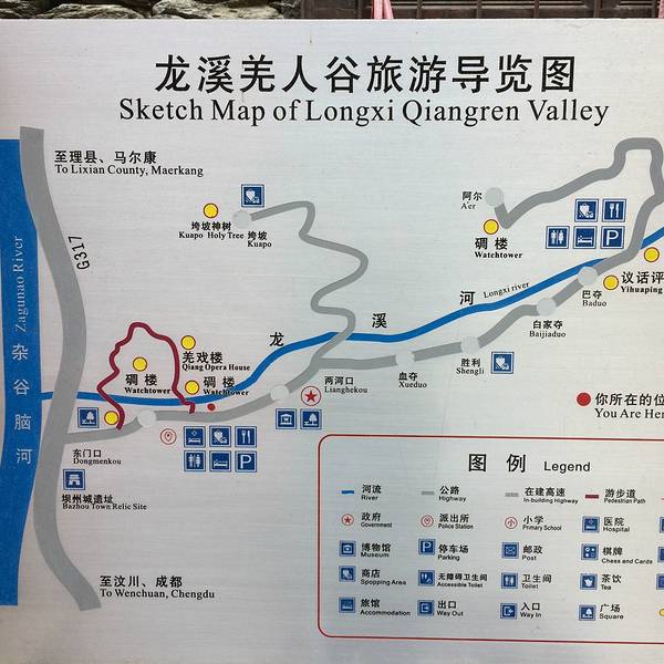 1、自驾游客前往景区十分方便,从都汶高速至汶川后,沿理县方向进即可抵达位于国道317线旁的东门寨核心景区。