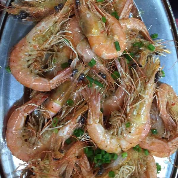 老板和店员都很热情。味道也不错。扇贝肉很新鲜,蒜蓉粉丝也入味。整体来说味道可以,环境可以。白煮虾,味道不错。