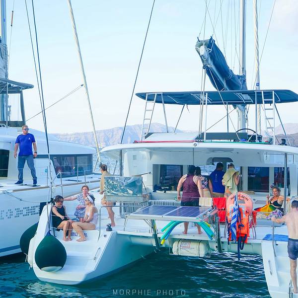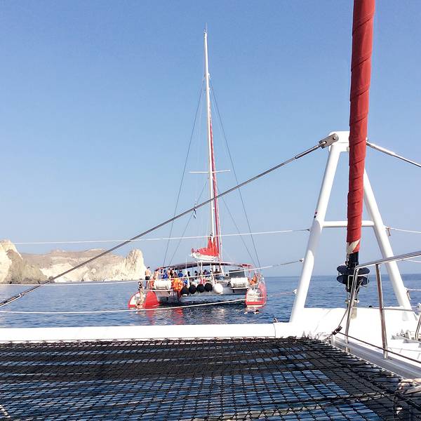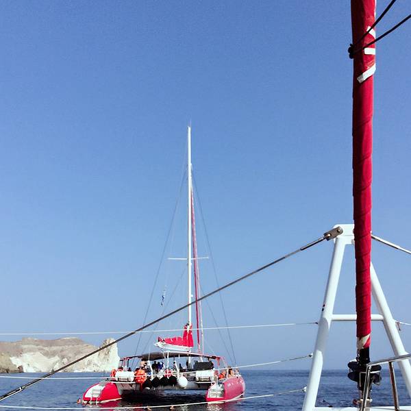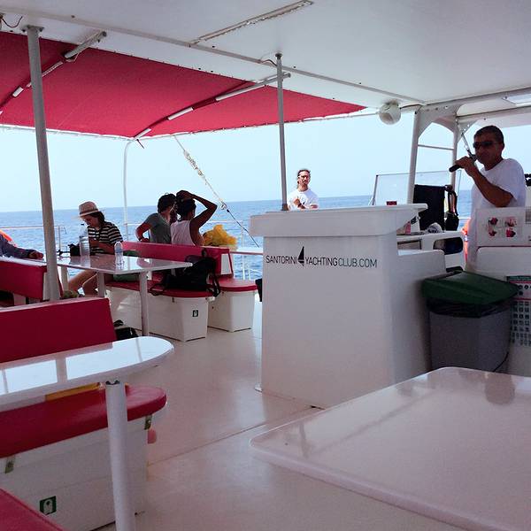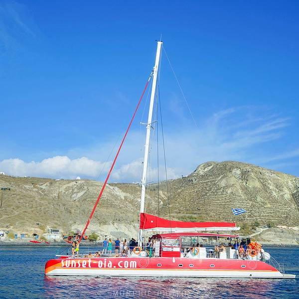 每次出行都很紧张,想看想了解的东西太多了,这次到圣托里尼岛想彻底的享受一下假期带来的身心松弛。圣托里尼有很多的游船,100多人、10几个人或者私家包租都很多,最好还是在国内搞定,当地现搞的话,有可能会没有满足你时间的游船。我们订的的日落时间的半私家游船,一只船有12个人,感觉非常轻松。