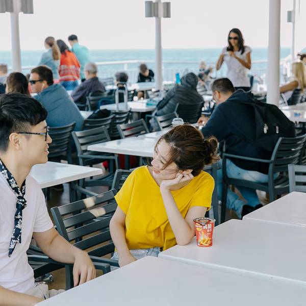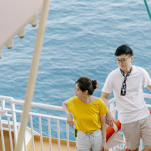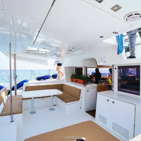 ...上船前都要脱鞋,船员也备了晕船药,想想还是预防一下吃一粒吧,结果发现是大正解,帆船真的超级晃的吃完午餐等着下午去参加游船看日落了。