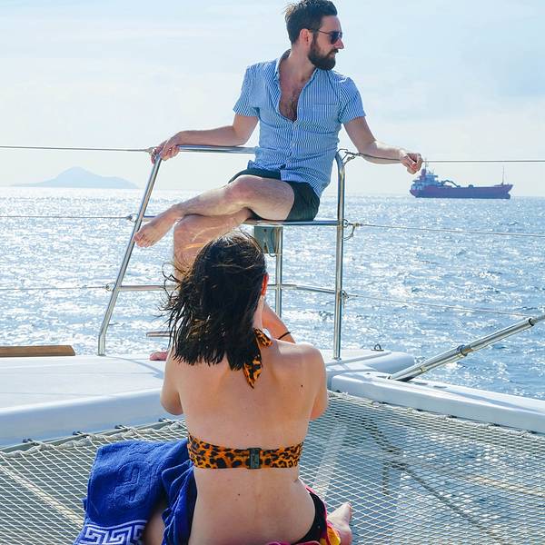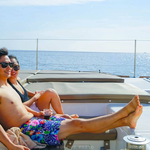 在太阳落下的那一瞬间,时间仿佛停滞了,船上突然变得宁静安详,每个人都陶醉在这人间美景中,直至安...专业游艇出海,带你伴随着动感劲爆音乐一路风驰电掣地浪,现场不仅提供饮料和帅哥船员现制BBQ,到每个景点还会有短暂戏水的happy hour,哪怕如我般是旱鸭子一枚,也可在艇上安坐,舒服地吹海风观海景!这可是爱!...专业游艇出海,带你伴随着动感劲爆音乐一路风驰电掣地浪,现场不仅提供饮料和帅哥船员现制BBQ,到每个景点还会有短暂戏水的happy hour,哪怕如我般是旱鸭子一枚,也可在艇上安坐,舒服地吹海风观海景!这可是爱!琴!海!啊!!!花个100欧,你就可以躺在这样的地方,晒鱼干~呵呵,这是游艇前部的“渔网区”,镂空!下面就是海,浪花时不时会溅到身上,你敢不敢躺?!头枕着爱琴的波浪,沐浴着热情的日光...的...我什么都不用想,吹着海风,喝着可乐,晒着太阳,闭眼,躺倒,放空...最最重要的体验,也是此次游艇出海的最美篇章,5小时的航行最终就为了这一幕 ---