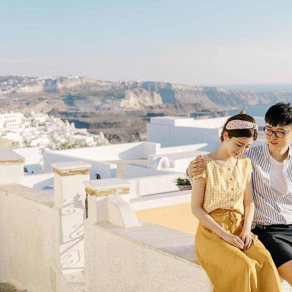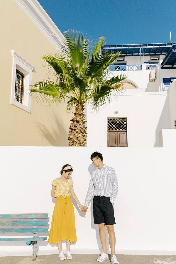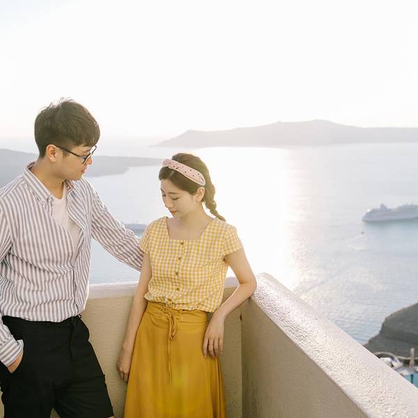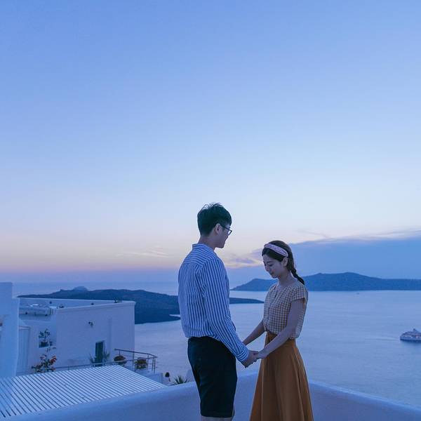 到了酒店之后换下了衣服,我们就开始岛上的第一组拍摄了,这会儿差不多已经下午四点多了,还是大太阳,查了下差不多要七八点才天黑呢,而且黄昏的时间很长,这段时间完全够我们拍一组顺便踩个点,把明天需要拍摄的几个场景先跟着导航找一下,特别是那个蓝顶教堂,白天都很多人在排队拍照,提前知道位置,明天一早好过来直接拍,省的在找路上面浪费时间。在圣托里尼岛的第一个黄昏,面对着爱琴海,在费拉的中心广场上,全世界各国的人围坐在栏杆上,看着日落,还有人在边上弹奏,我们买了几瓶饮料坐在一边休息,看着广场上的人群和爱琴海的日落,一切都太美好了。到了晚上气温会比白天低不少,海风吹着稍微还是有点冷的,加了个小外套披着,去海边的餐厅美滋滋的吃个晚饭,然后早早回去休息了,明天跟他俩约了早上七点半集合,要开始婚纱照的拍摄啦。 展开