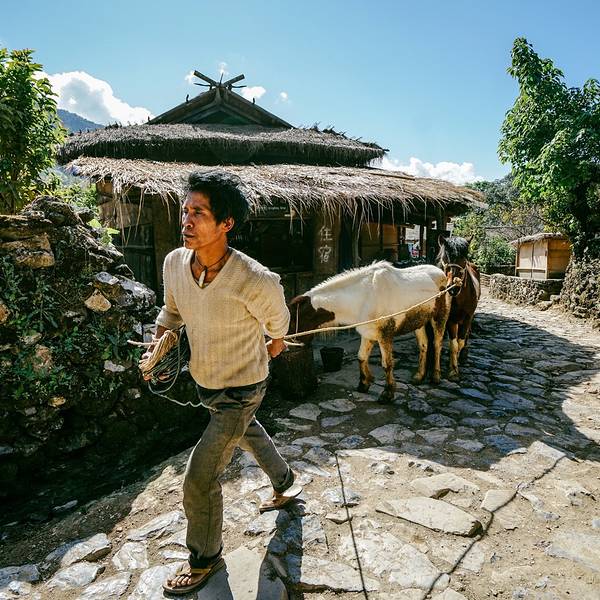 金骆驼 这根长长的原木树干被打磨得异常光滑,横着搁置在木架上,经介绍才得知这竟然是木鼓翁丁村,可能鲜有人熟悉或了解这个位于祖国西南边陲的小村落,这个有着数百年历史的佤族原生态村寨截止2010年底,才实现通水、通电等基本生活设施,对于从小到大都生活在城市中的我来说,听上去那么的不可思议,...翁丁村,可能鲜有人熟悉或了解这个位于祖国西南边陲的小村落,这个有着数百年历史的佤族原生态村寨截止2010年底,才实现通水、通电等基本生活设施,对于从小到大都生活在城市中的我来说,听上去那么的不可思议,现在每天的出行连现金都不用随身携带,靠网络和手机就可以存活一天,这里简直是遥不可及的一个传说。遗留给我们的不仅仅是古老的原始生活和悠久文化,更是孩子们天真烂漫的笑容和老人们饱经沧桑的皱纹。翁丁村隶属于沧源佤族自治县勐角乡,从沧源县城出发约40公里左右,基本上是柏油公路,路况不错,车程一个多小时;晚上可以选择在沧源或耿马傣族佤族自治县居住,耿马稍远一些,90公里左右,因为路况和限速,开车大约三小时左右。如果不介意住宿条件的话,其实可以住在翁丁村村民家中,大约几十块钱一晚,还包吃饭,想必早晚没有游客的情况下有另一番别样的情景。七拐八弯的山路,接近翁丁村,可以在路口看到木桩和牛头的标示,掩饰不住心中那份小激动,跳下车近距离看个仔细。牛头新旧程度各不相同,有些已经被侵蚀到发黄破洞,牛角无比尖利,黑洞洞的眼窝,神秘的让人有些毛骨悚然。一到大门口,站在竹棚下的村民们热情洋溢地跳起了舞唱起了歌打起了鼓,歌声质朴动情。当我正忙着拍摄,右手边戴着蓝帽子的大哥突然上前在我脑门中间点了一下,他手中捧着一个碗,碗中黑乎乎的一大坨类似泥巴的东西,原来是由中草药和淤泥活成的,是当地欢迎贵客的一种仪式,俗称“摸你黑”。每年五月初在沧源还有一个盛大的节日“摸你黑狂欢节”,大家互相涂抹这种黑色涂料,相互给予祝福,越黑越美,哈哈哈,听上去特别有意思,有机会5月再来一次体验一把。每个上了年纪的阿婆都头裹彩布,颈上都带了一根非常有特色的装饰品,银制的花状项链,在最中间的花蕊部分还嵌着五彩缤纷的须须。而年轻的女孩子们大多穿着红黑色相间的分体式长裙,上面刺有民族感强烈的绣花图案。进村的青石板大路两旁也挂满了牛头,后来得知这些牛头都是村民们曾经宰杀祭祀用的,牛头的数量越多个头越大,就表明这个村子越富足,势力也越大。寨子的正门口有一棵枝繁叶茂的大榕树,走过大树就真正来到了村子。踏上凹凸不平的石板路,两旁遍布着大大小小的茅草屋,地板和屋子主体都是用竹子和木头建成的,而房顶都覆盖着厚厚的稻草。整个村子被青山所环绕,因为村民信仰树神,所以从不轻易砍伐树木,生态环境相当好哦。村民们晾晒的腌肉走着走着就会有鸡从鸡棚里“咯咯咯……”地叫着走出来,不光是鸡,在村子里散步你还能遇上狗和猪,可是不知道为什么,所有动物一看见我掉头就跑,难道我是老虎狮子不成。正在村里弯弯绕绕迷路了,路遇这个圆圆脸庞大大眼睛的可爱小姑娘问路。她索性停下不走了,紧紧跟着我,手里拿着一包膨化食品,还主动要跟我分享,真是大方不护食的好孩子。不像我,有好吃的死死抱住不放,谁敢抢我跟谁急,哈哈哈。部分村民房子大一些的分成两层,下面堆着供家禽吃的食物还有鸡窝猪棚和菜园,上层则是他们自己所居住的房间。有位和蔼的大叔看我不好意思拍他的家,还邀请我去楼上看看。踏上咯吱作响的木制楼梯,阿姨正在吃午饭。厅的正中间一块地方和其它地板不同,全部是石头,上面堆放着木头和炭火,原来他们在这里直接做饭烧菜,还可以取暖。二层有扇通往外面阳台的小门,特别的矮,连我这个哈比人都要弯腰低头穿过,阳台上用竹编的篮筐晾晒着他们采摘的茶叶,低头一闻传来阵阵清香。村里有出售的,特别便宜,好像10块钱一大包。村里大部分都是老人和孩子,跟大多数村庄一样,年轻人都怀揣着各自的梦想去了大城市打工,逢年过节才回家一趟。年纪稍长的阿婆们个个烟不离手,不管是坐着还是站着,都抽着这种银制雕花的长烟斗,用一种说不清道不明的眼神淡然地看着身边来来往往的游客。看着这张饱经风霜的脸,纵横交错深深的皱纹,每一条似乎都刻着曾经的沧桑写着岁月留下的故事。走到村子的尽头,有一片高地,高地上有棵无比高大盘根错节的大榕树,树的旁边还竖立着一根根的竹桩,桩的顶部有竹编的篮筐。看介绍后不禁吓了一跳,原来这里是人头桩,是古时佤族人民祭祀活人的地方,忽然一阵风过,感觉凉飕飕的。古老的翁丁村至今任然延续着男耕女织的传统生活,妇女们不但可以用织布所得来的钱贴补家用,也用自己所织的布制成床单,被褥,衣服等自家留用。这种布好特别,来源于某种植物,可以看到上面不规则地布满了很多天然的植物小颗粒。这里织布所用的机器都是最老式传统的织布机,尽管户外艳阳高照,她们认真地用梭子在细密的纱线中左右来回穿插,光着脚踩着底下的木棍,轻车熟路地织出一匹又一匹的布料。这根长长的原木树干被打磨得异常光滑,横着搁置在木架上,经介绍才得知这竟然是木鼓。在当地佤语中称为‘格珞“,是佤族人民祭祀所用的通天神器,听上去是不是超级牛,感觉跟超级玛丽中
