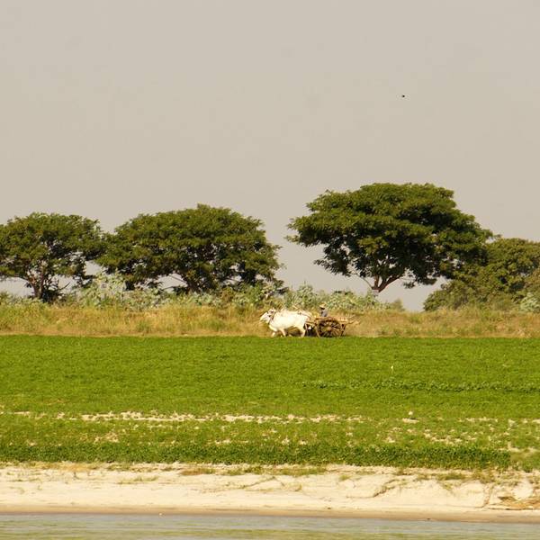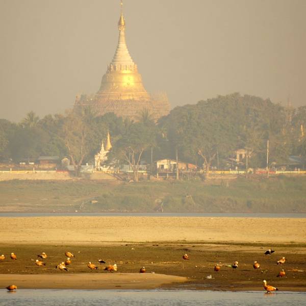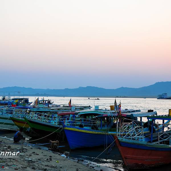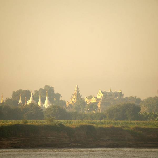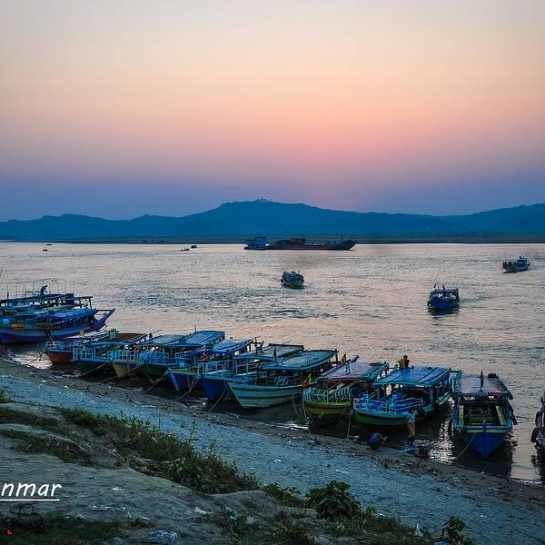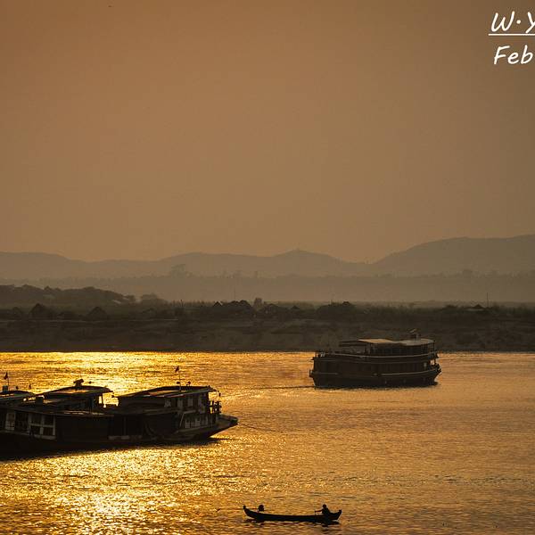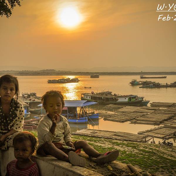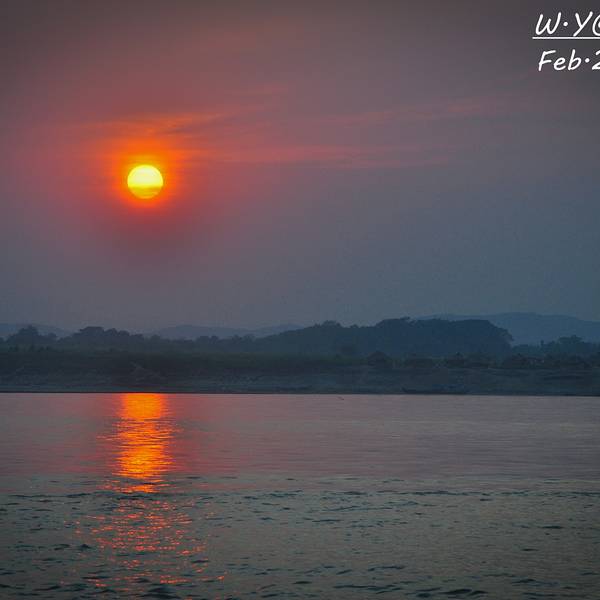 伊洛瓦...平原上先是飘起袅袅炊烟,再是日落的昏黄沁透了伊洛瓦底江。视野的开阔是蒲甘也不能比拟的。
