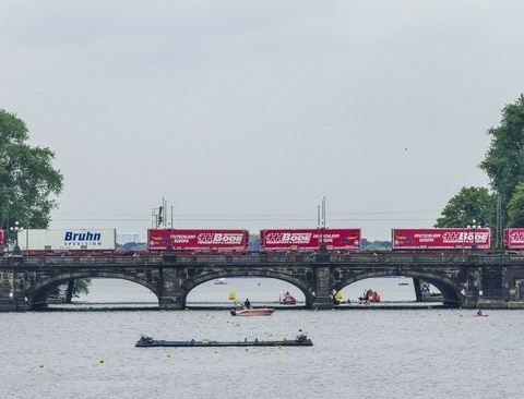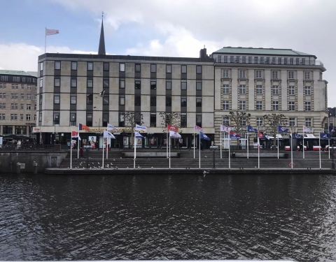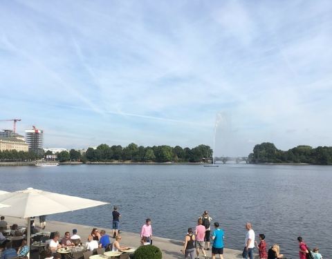 被誉为镶嵌在汉堡上的一颗明珠,站在湖中央的桥上欣赏汉堡全景。