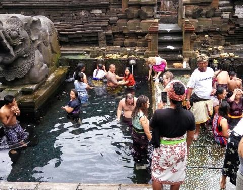 ...德格拉朗梯田转入山间小路去圣泉寺,感觉景色更美,绿野和神庙组合,看起来很美,空寂无人,更显静谧骑摩托车离开德格拉朗梯田转入山间小路去圣泉寺,感觉景色更美,绿野和神庙组合,看起来很美,空寂无人,更显静谧。 在山间小路里上下盘旋了约8公里来到圣泉寺,这也是乌布的景点,游人很多。 圣泉寺在公元962年...骑摩托车离开德格拉朗梯田转入山间小路去圣泉寺,感觉景色更美,绿野和神庙组合,看起来很美,空寂无人,更显静谧。 在山间小路里上下盘旋了约8公里来到圣泉寺,这也是乌布的景点,游人很多。 圣泉寺在公元962年被发现,据说有神奇的力量,不同的出水口药效不一样,拥有消灾除邪,减缓病痛等功能。印度教对水的崇拜由此可以看出来。游客前往圣泉寺进行朝拜,希望圣水能冲洗身体,祈求健康安详。 圣水池分左右,左池求健康,右池求财富。 来左池的人絡绎不绝,可见人们对健康的祈求比财富更强烈。 展开
