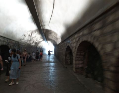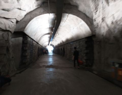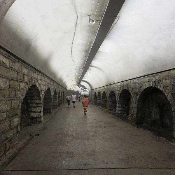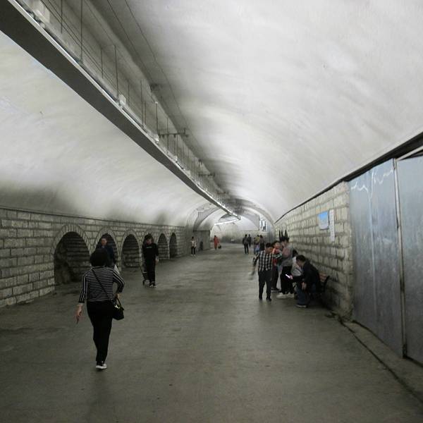 从一边入口走到另一端的出口大概是5分种左右,但个人感觉与一般人行隧道无异据说以前是一条防空洞,现在已经变成了一条行人隧道。从一边入口走到另一端的出口大概是5分种左右,但个人感觉与一般人行隧道无异。